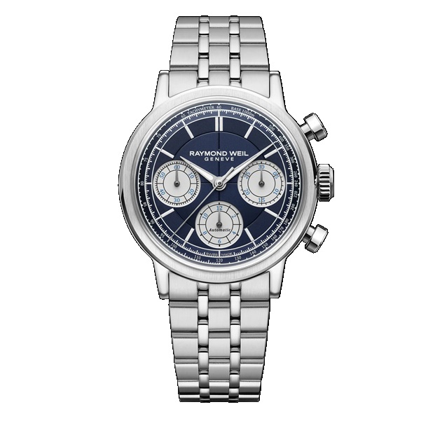 Raymond Weil Cronógrafo automático Millesime Tri-Compax con esfera azul medianoche, 39 mm 7765-ST-50651